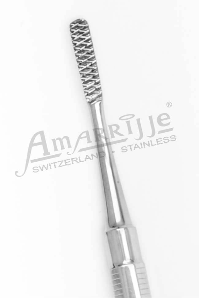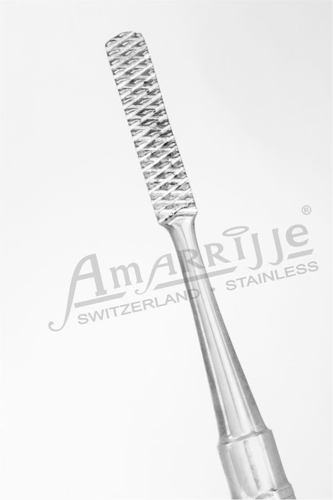 ✓ Used to smoothen bone for improved contour of alveolar ridge, often following the use of a bone rongeur