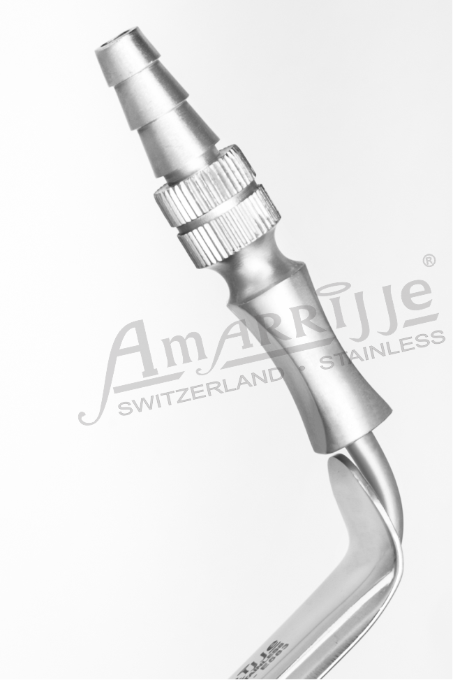 The Modified Minnesota Frazier (MMF) combines protective soft tissue retraction with powerful oral fluid evacuation in one sleek instrument. Alongside gently retracting the cheeks, tongue, and lips, its integrated bevel suction tip also delivers strong targeted suction of fluid. This maintains a clear field of vision and improves procedural flow.