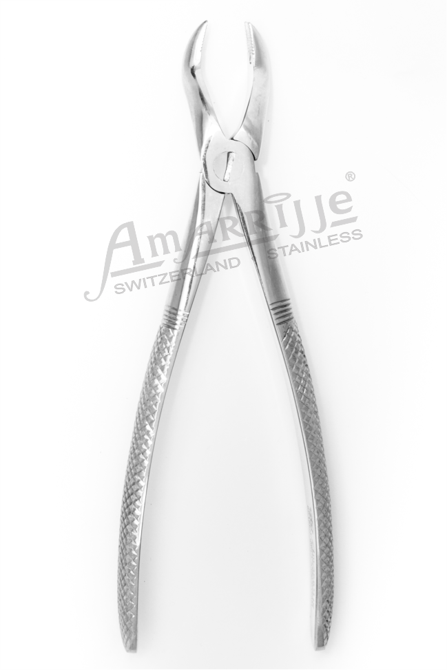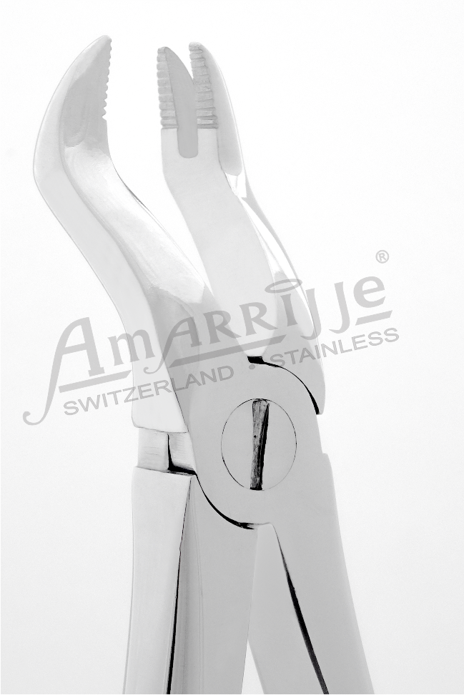 The Nevius 88R Trong Forceps is designed for the extraction of right upper 1st and 2nd molars. It is classified under “Presidential Forceps” due to having been a powerful, first-choice tool in difficult upper molar extraction cases. The split palatal beak engages on either side of the single palatal root, while the solid buccal beak seats securely between the two buccal roots. This increases stability without depending on the integrity of the crown for grip.