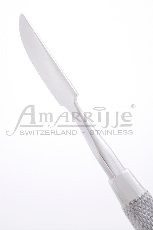 The Roach Carver is an excellent wax cutter for fine gingival margins. Its fine-tipped blade and concave end allow for detailed refining and placing, making it ideal for fine finishing and filling in study models.